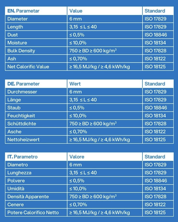 Pri sagorevanju daje ostatak do 1% pepela, a dva kilograma peleta mogu zameniti jedan litar mazuta.